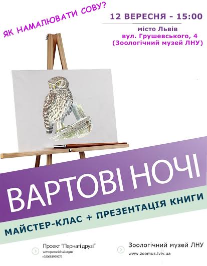 12 вересня 2015 року, о 15.00 год. у Зоологічному музеї, біологічного факультету ЛНУ ім. Івана Франка (вул. Грушевського, 4) відбудеться майстер-клас з малювання птахів від знаного українського художника-анімаліста Ігоря Землянських та презентація популярної книги про сов «Вартові ночі».